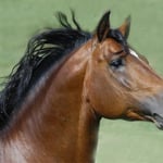 Eleganter ausdrucksvoller Typ mit viel Seele im Auge. Beweis für das Vertrauen, dass der Hengst dem Menschen entgegen bringt. Diese Ausstrahlung von Würde und Energie,